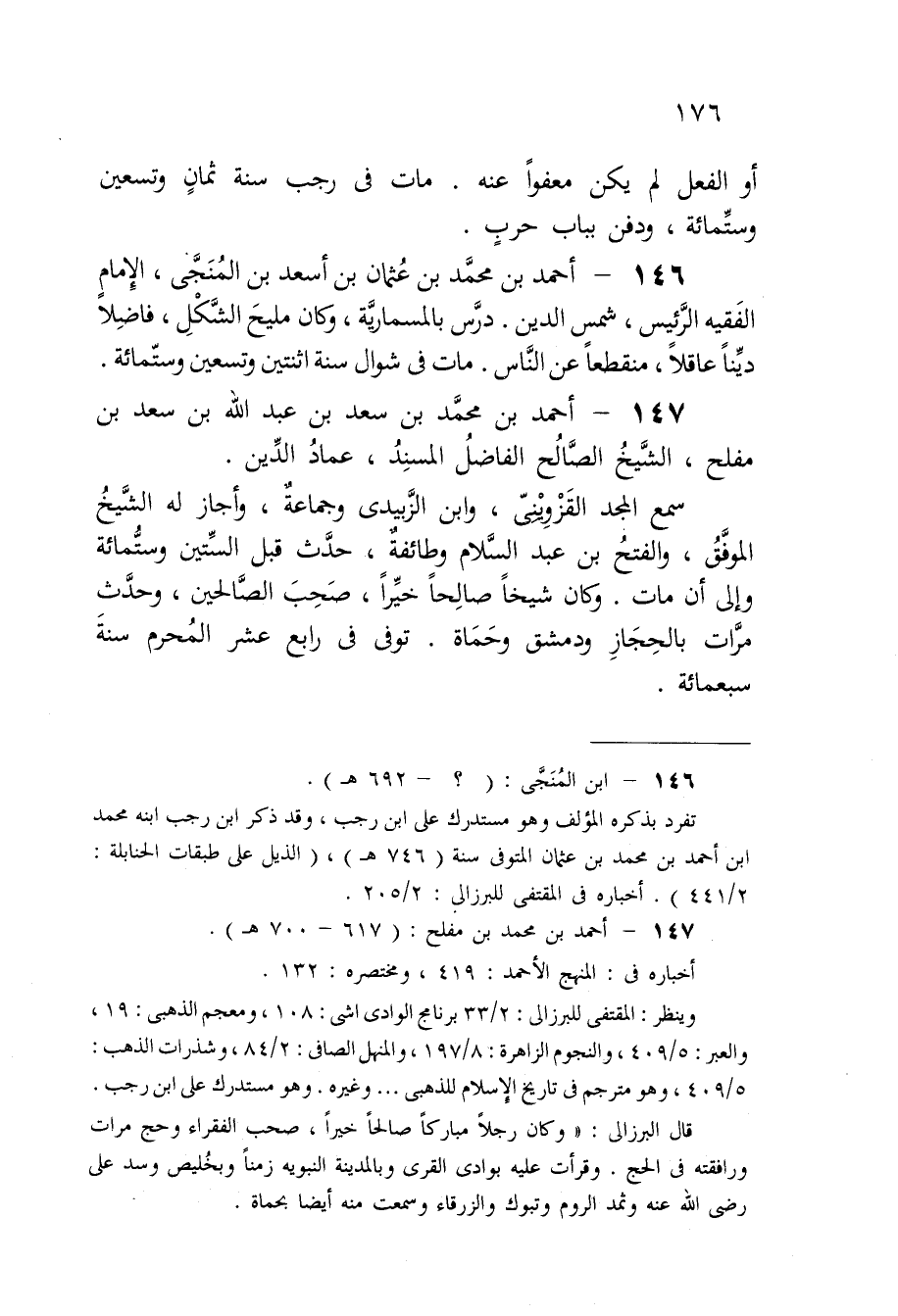 146 - أَحْمد بن مُحَمَّد بن عُثْمَان بن أسعد بن المنجى الإِمَام الْفَقِيه الرئيس شمس الدّين