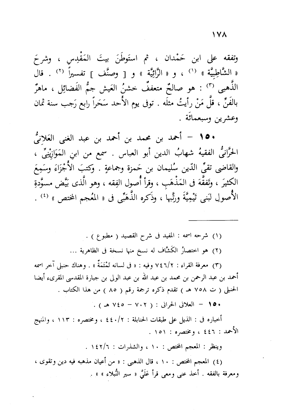 150 - أَحْمد بن مُحَمَّد بن أَحْمد بن عبد الْغنى العلانى الحرانى الْفَقِيه شهَاب الدّين أَبُو الْعَبَّاس