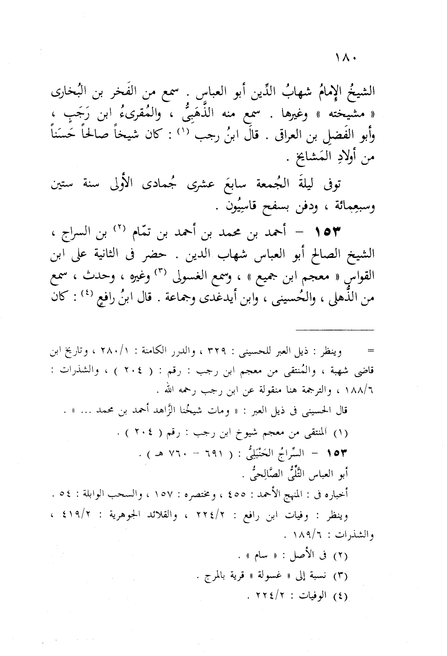 153 - أَحْمد بن مُحَمَّد بن أَحْمد بن تَمام بن السراج الشَّيْخ الصَّالح أَبُو الْعَبَّاس شهَاب الدّين