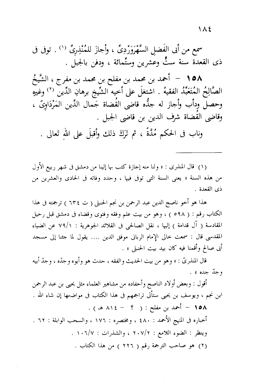 158 - أَحْمد بن مُحَمَّد بن مُفْلِح بن مُحَمَّد بن مفرج الشَّيْخ الصَّالح المتعبد الْفَقِيه