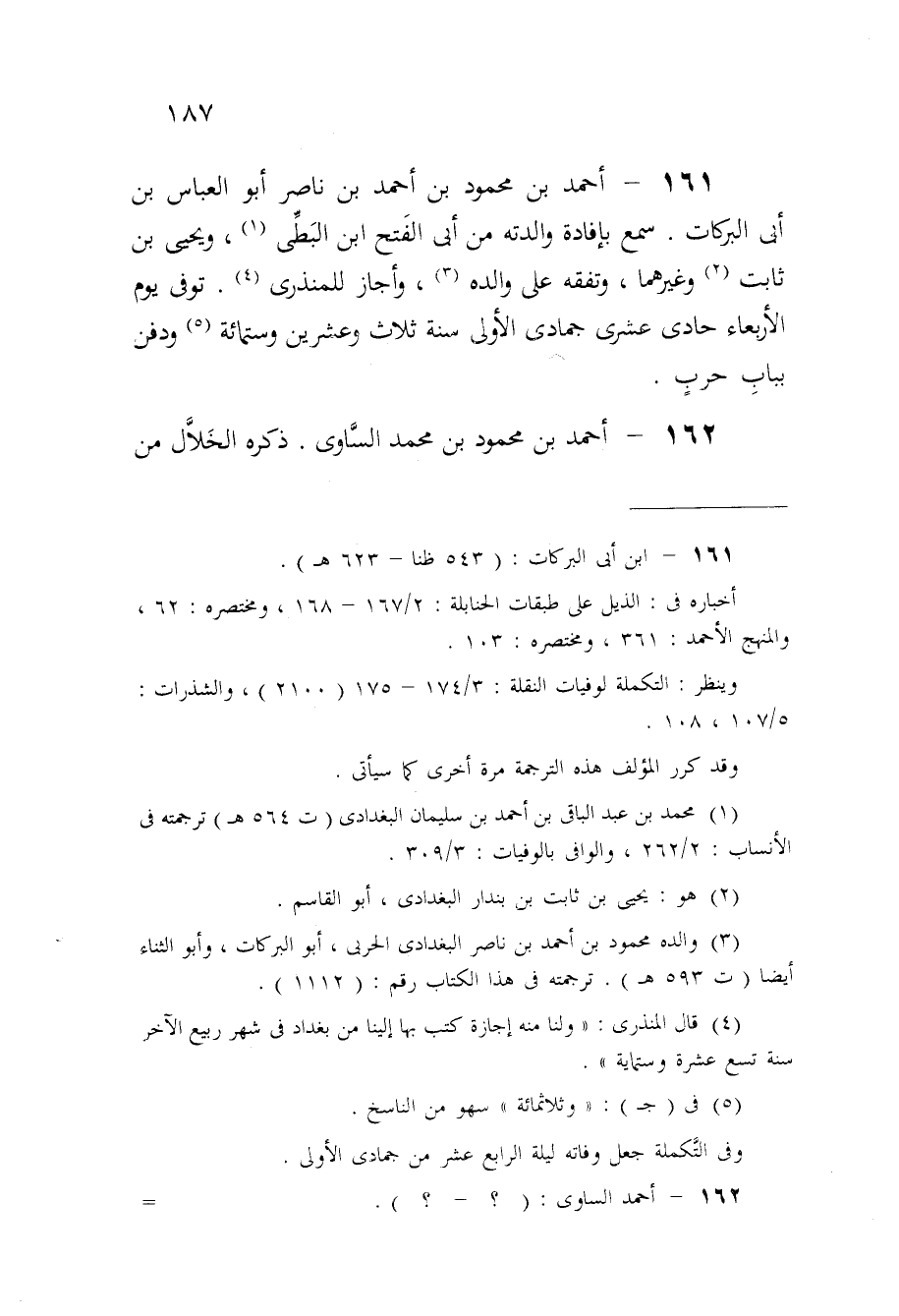 161 - أَحْمد بن مَحْمُود بن أَحْمد بن نَاصِر أَبُو الْعَبَّاس بن أَبى البركات