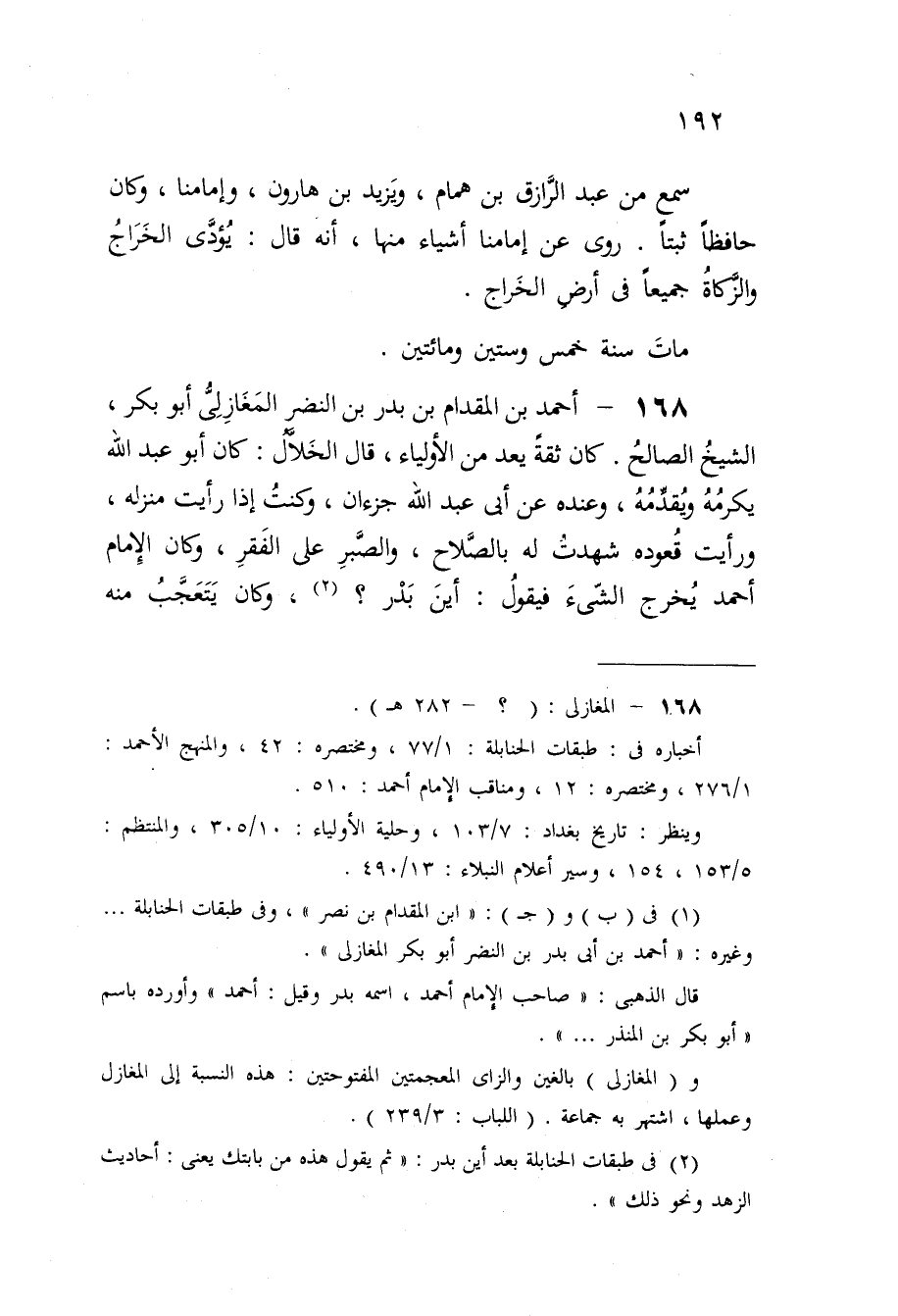 168 - أَحْمد بن الْمِقْدَام بن بدر بن النَّضر المغازلى أَبُو بكر الشَّيْخ الصَّالح