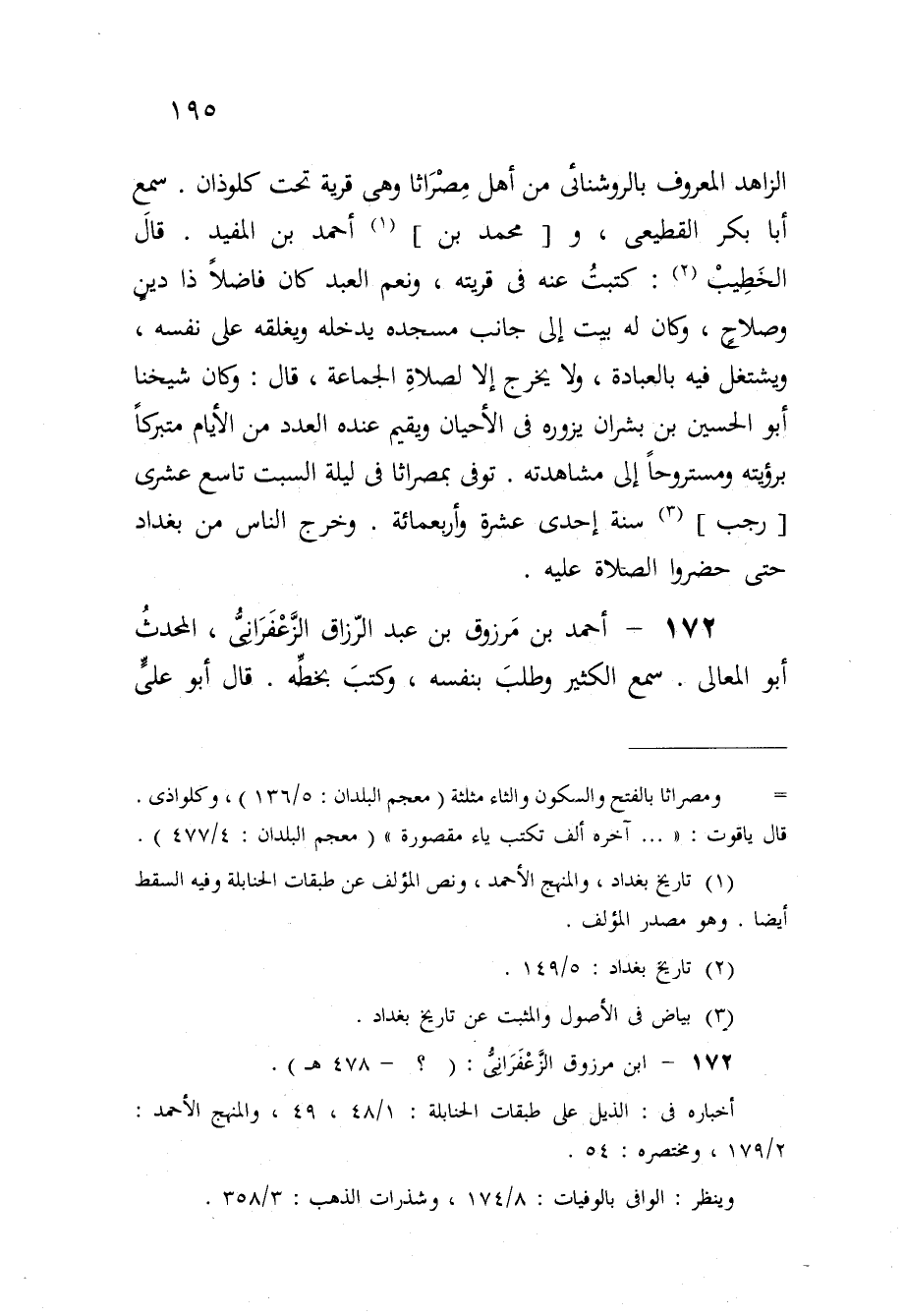 172 - أَحْمد بن مَرْزُوق بن عبد الرَّزَّاق الزعفرانى الْمُحدث أَبُو المعالى