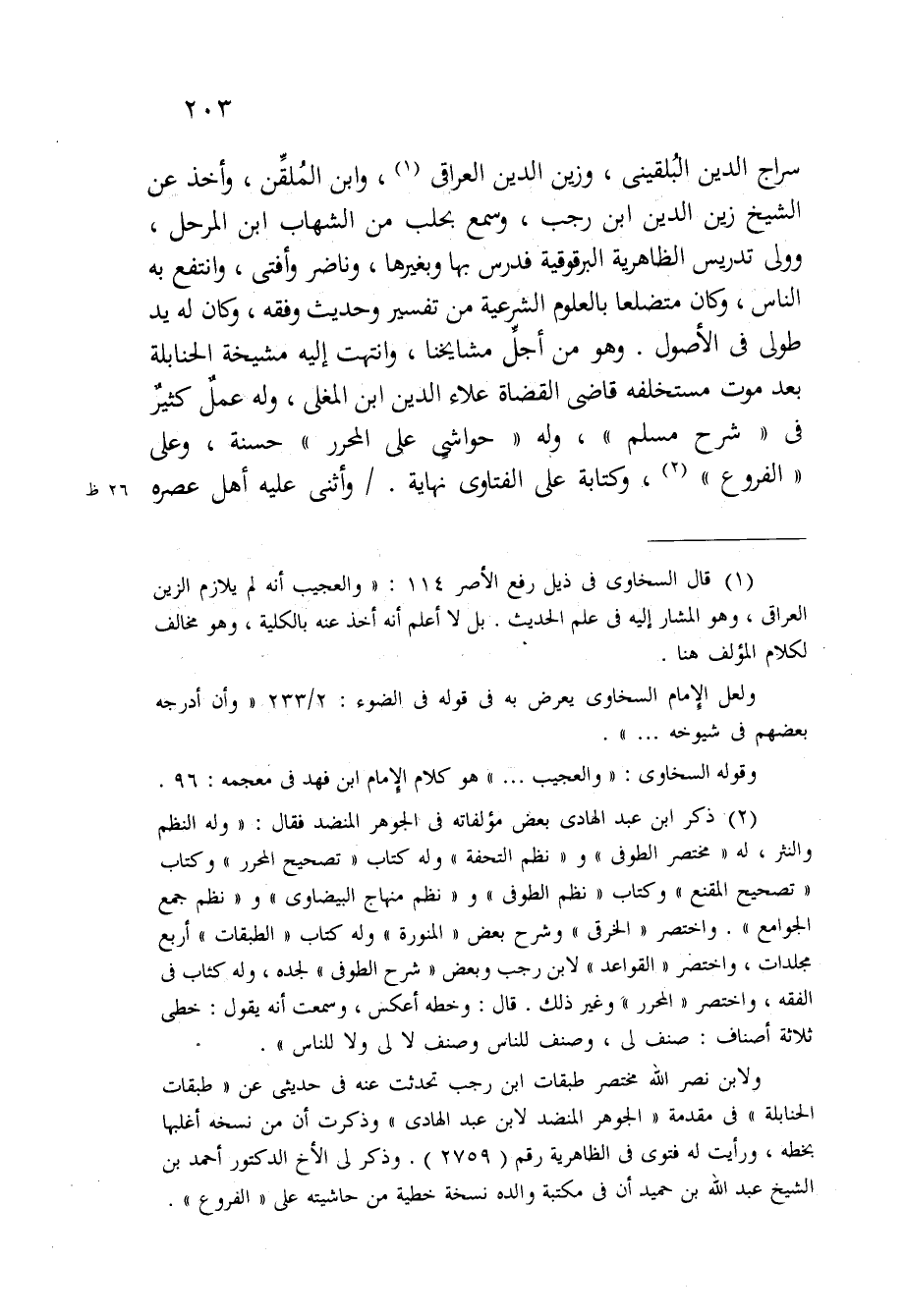 سراج الدّين البلقينى وزين الدّين العراقى وَابْن الملقن وَأخذ عَن الشَّيْخ زين الدّين ابْن رَجَب وَسمع بحلب من الشهَاب ابْن المرحل وَولى تدريس الظَّاهِرِيَّة البرقوقية فدرس بهَا وبغيرها وناضر وَأفْتى وانتفع بِهِ النَّاس وَكَانَ متضلعا بالعلوم الشَّرْعِيَّة من تَفْسِير وَحَدِيث وَفقه وَكَانَ لَهُ يَد طولى فى الْأُصُول
