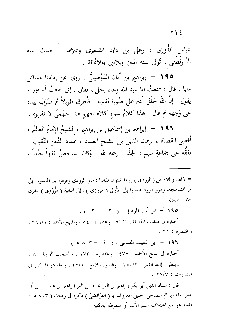 196 - إِبْرَاهِيم بن إِسْمَاعِيل بن إِبْرَاهِيم الشَّيْخ الإِمَام الْعَالم أقضى الْقُضَاة برهَان الدّين بن الشَّيْخ الْعِمَاد عماد الدّين النَّقِيب