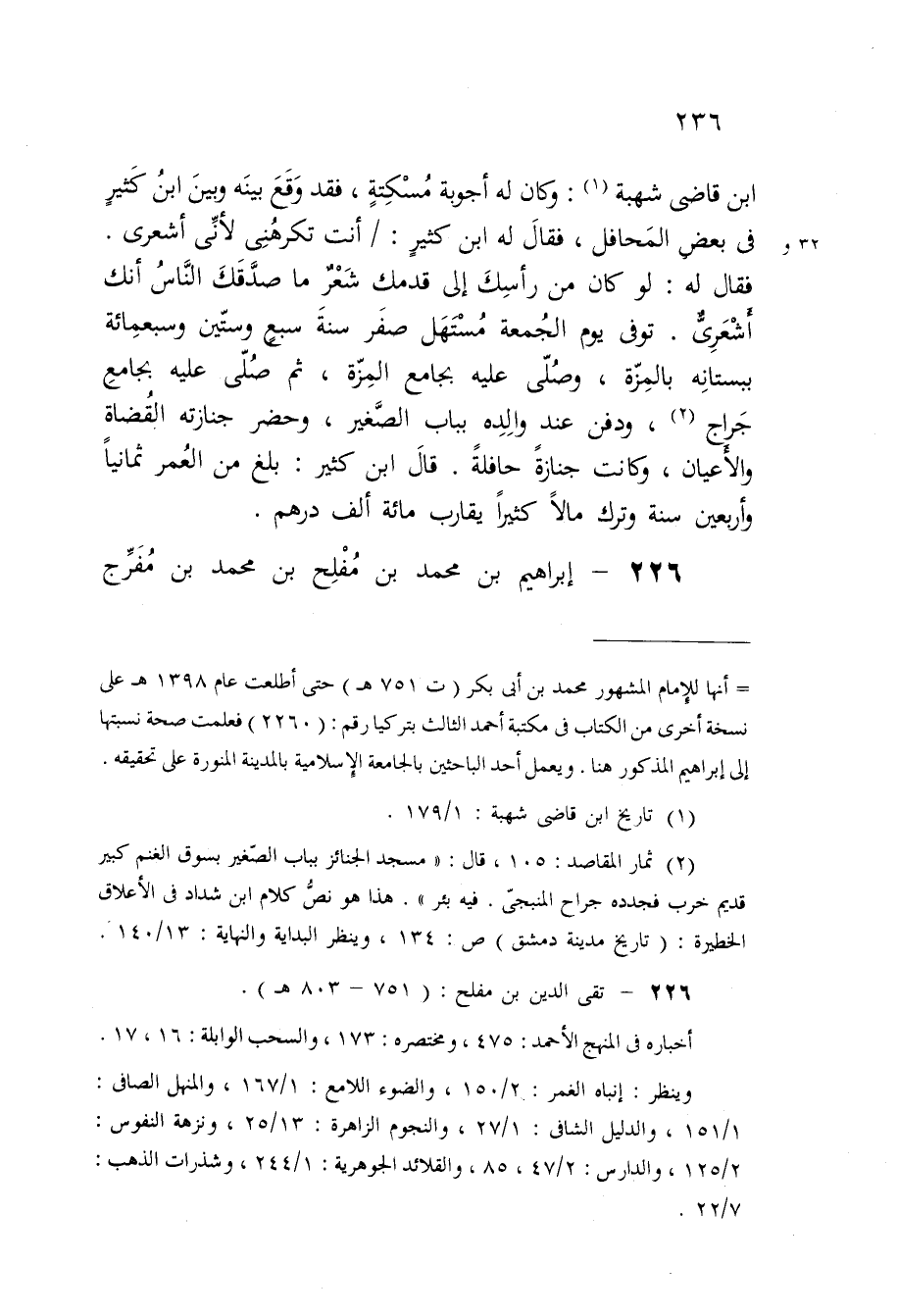 226 - إِبْرَاهِيم بن مُحَمَّد بن مُفْلِح بن مُحَمَّد بن مفرج
