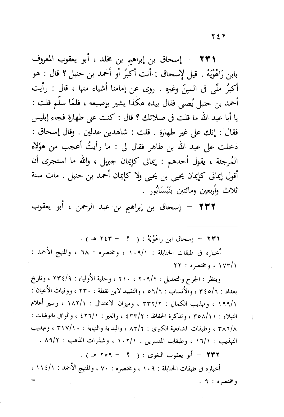 231 - إِسْحَاق بن إِبْرَاهِيم بن مخلد أَبُو يَعْقُوب الْمَعْرُوف بِابْن رَاهَوَيْه