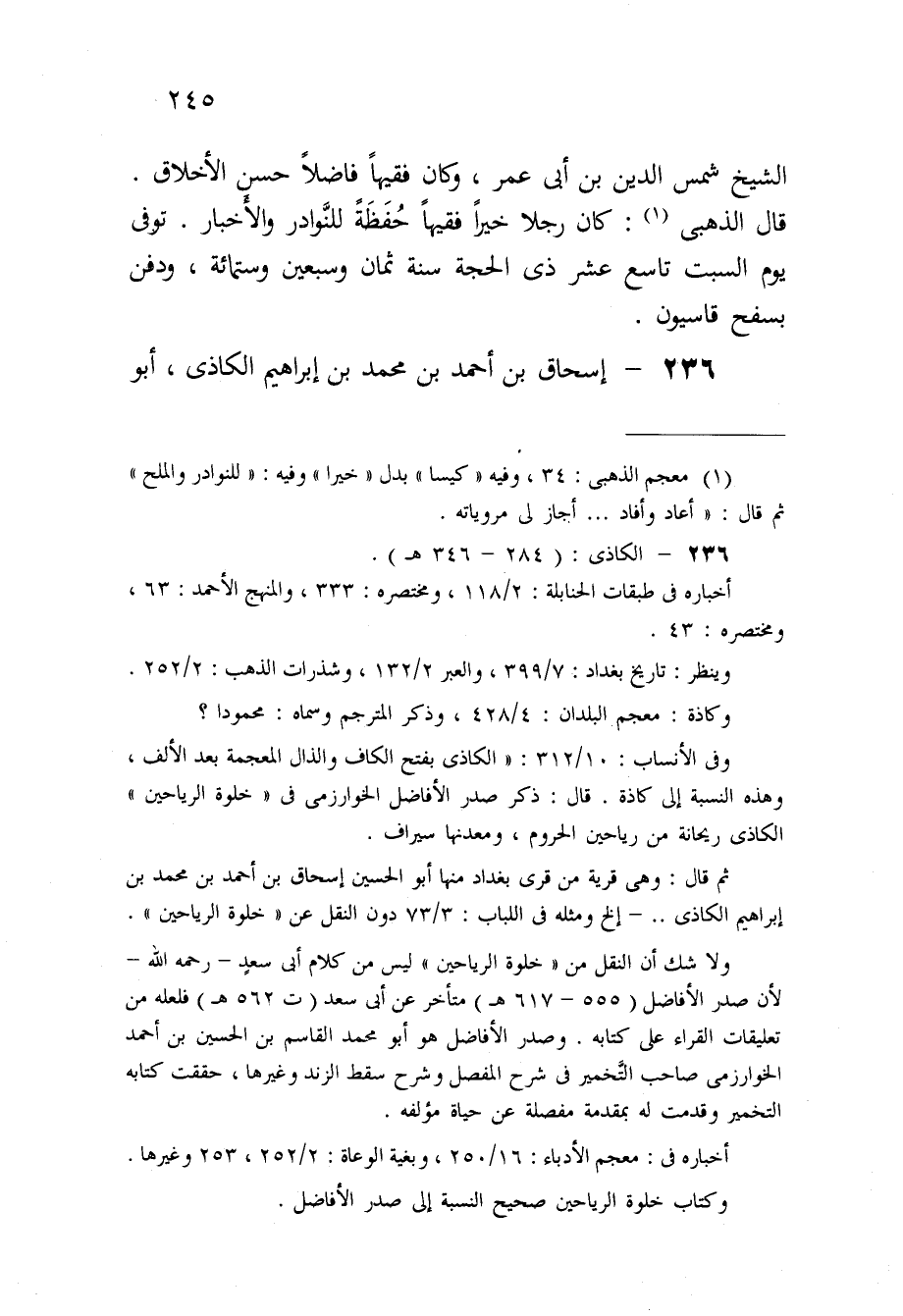 236 - إِسْحَاق بن أَحْمد بن مُحَمَّد بن إِبْرَاهِيم الكاذى أَبُو
