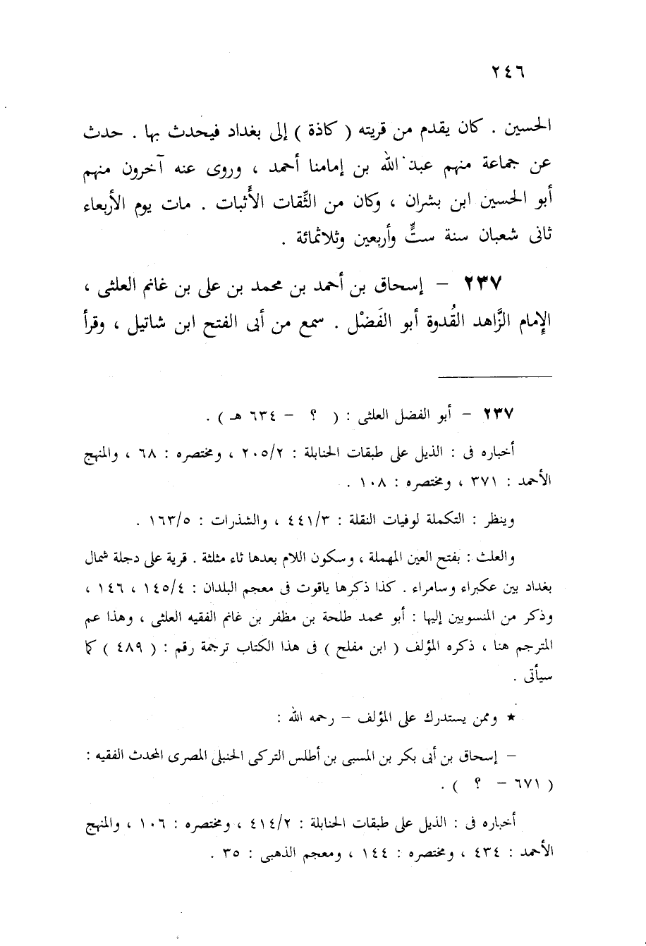 237 - إِسْحَاق بن أَحْمد بن مُحَمَّد بن على بن غَانِم العلثى الإِمَام الزَّاهِد الْقدْوَة أَبُو الْفضل