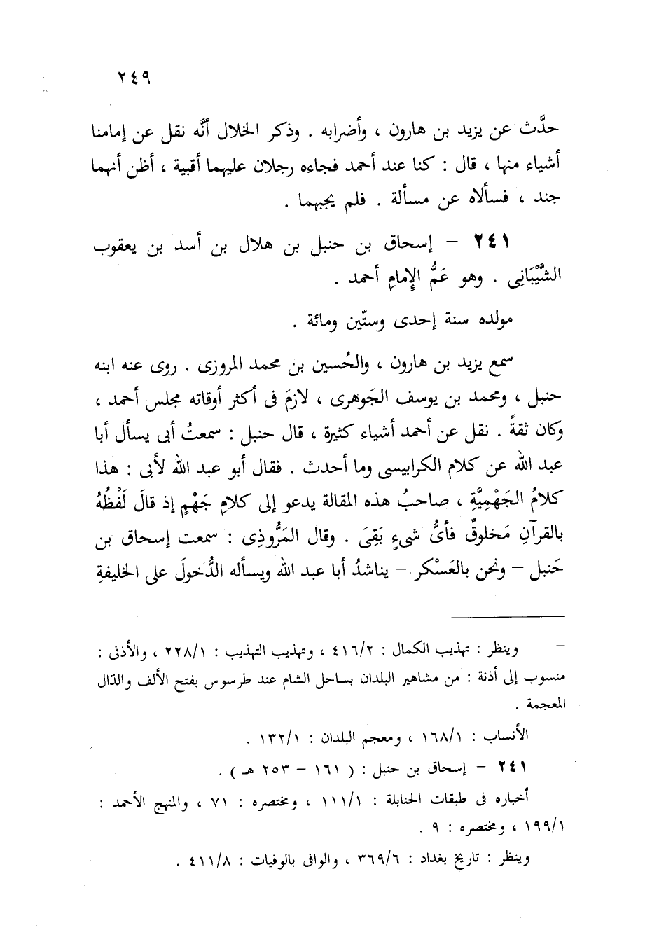 241 - إِسْحَاق بن حَنْبَل بن هِلَال بن أَسد بن يَعْقُوب الشيبانى