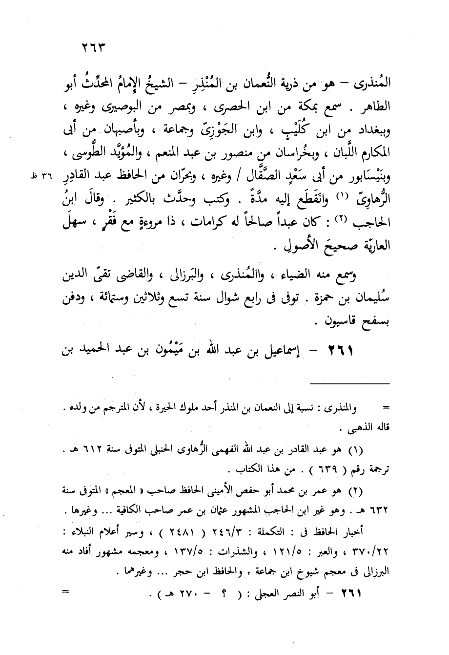 المنذرى هُوَ من ذُرِّيَّة النُّعْمَان بن الْمُنْذر الشَّيْخ الإِمَام الْمُحدث أَبُو الطَّاهِر