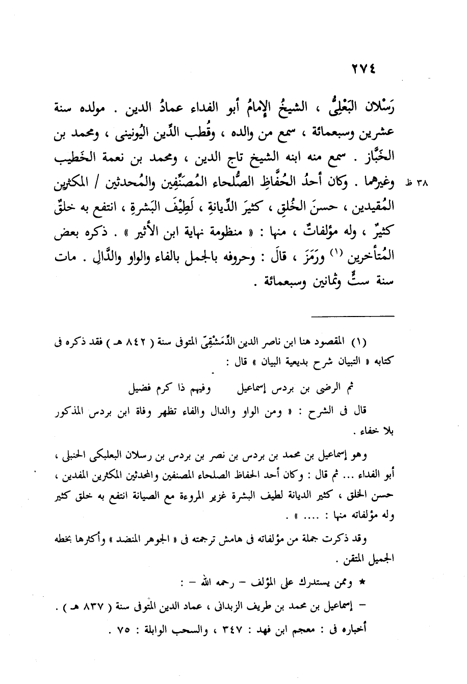 رسْلَان البعلى الشَّيْخ الإِمَام أَبُو الْفِدَاء عماد الدّين