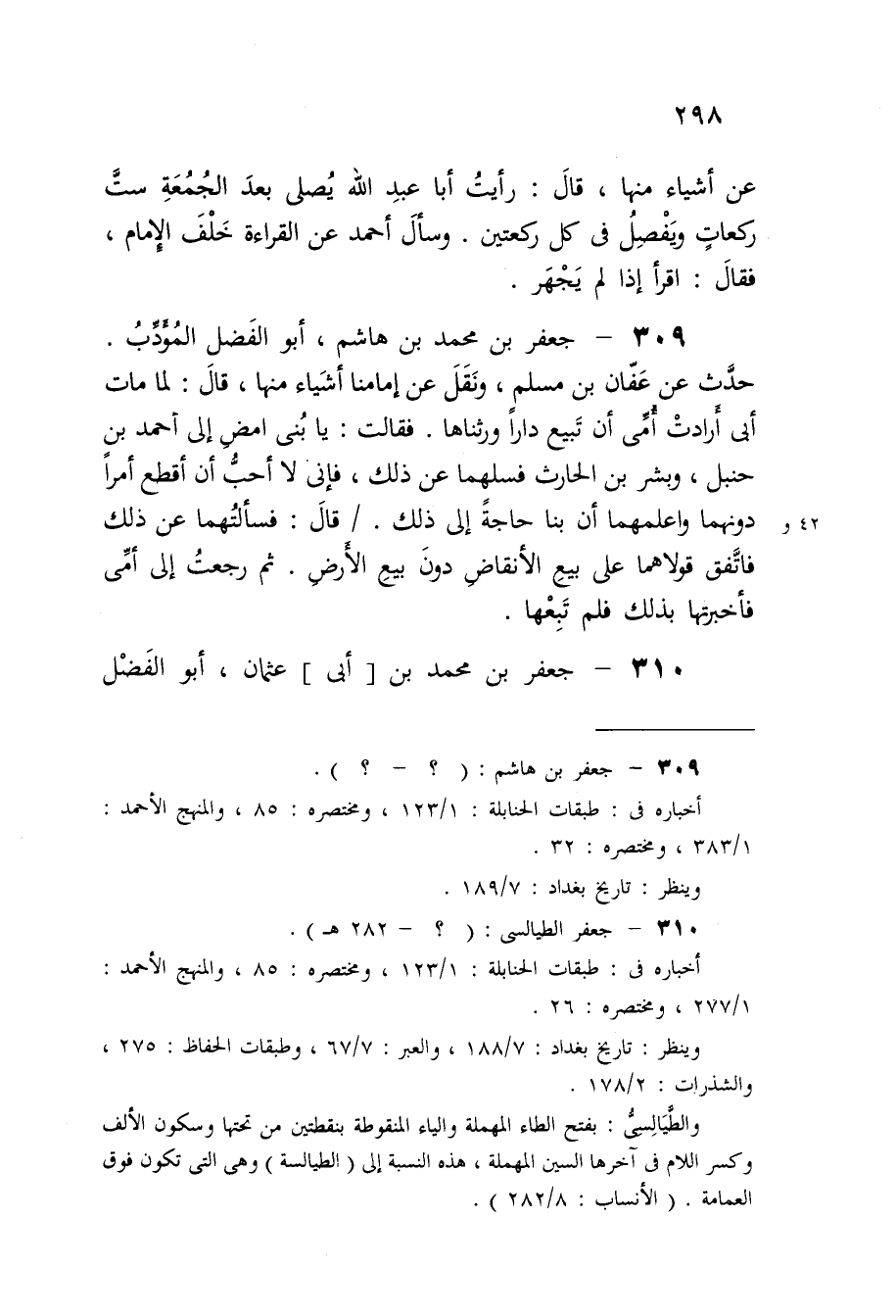 309 - جَعْفَر بن مُحَمَّد بن هَاشم أَبُو الْفضل الْمُؤَدب