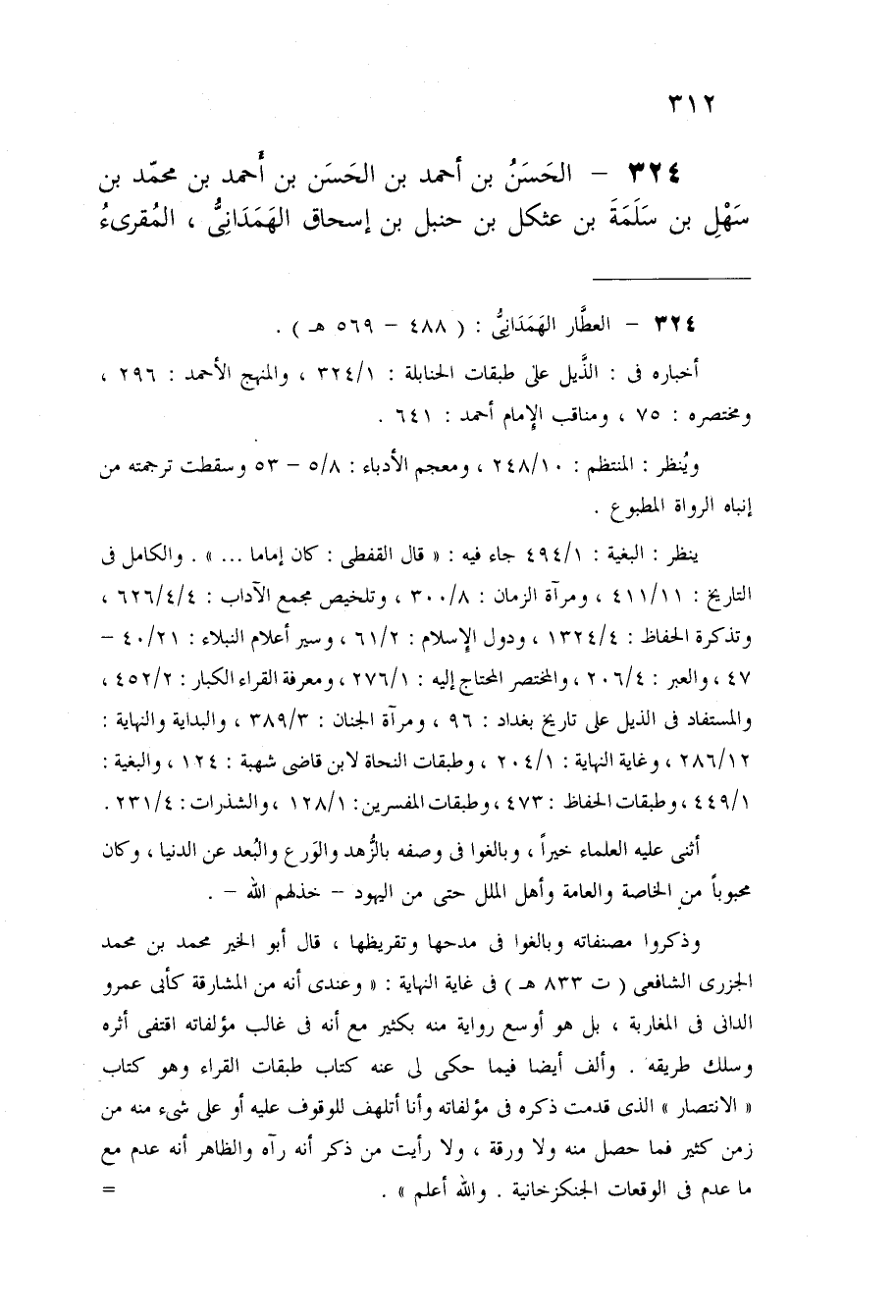 324 - الْحسن بن أَحْمد بن الْحسن بن أَحْمد بن مُحَمَّد بن سهل بن سَلمَة بن عثكل بن حَنْبَل بن إِسْحَاق الهمدانى المقرىء