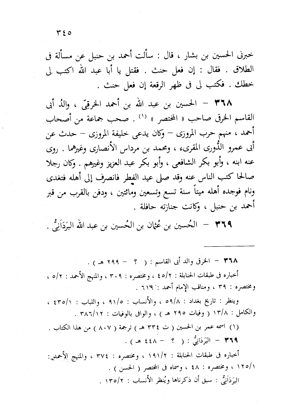 368 - الْحُسَيْن بن عبد الله بن أَحْمد الخرقى وَالِد أَبى الْقَاسِم الخرقى صَاحب الْمُخْتَصر