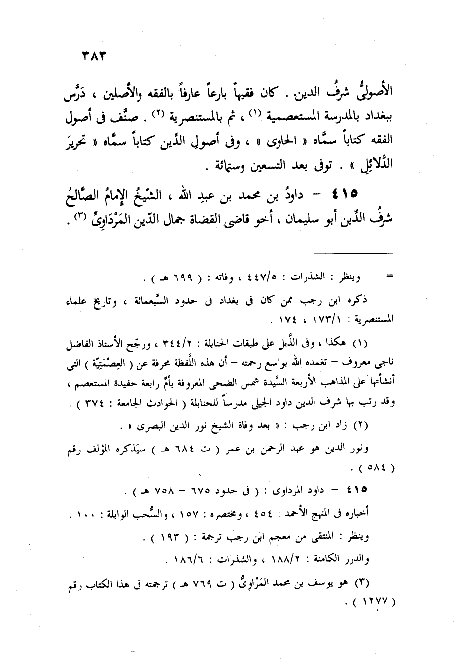 415 - دَاوُد بن مُحَمَّد بن عبد الله الشَّيْخ الإِمَام الصَّالح شرف الدّين أَبُو سُلَيْمَان أَخُو قاضى الْقُضَاة جمال الدّين المرداوى
