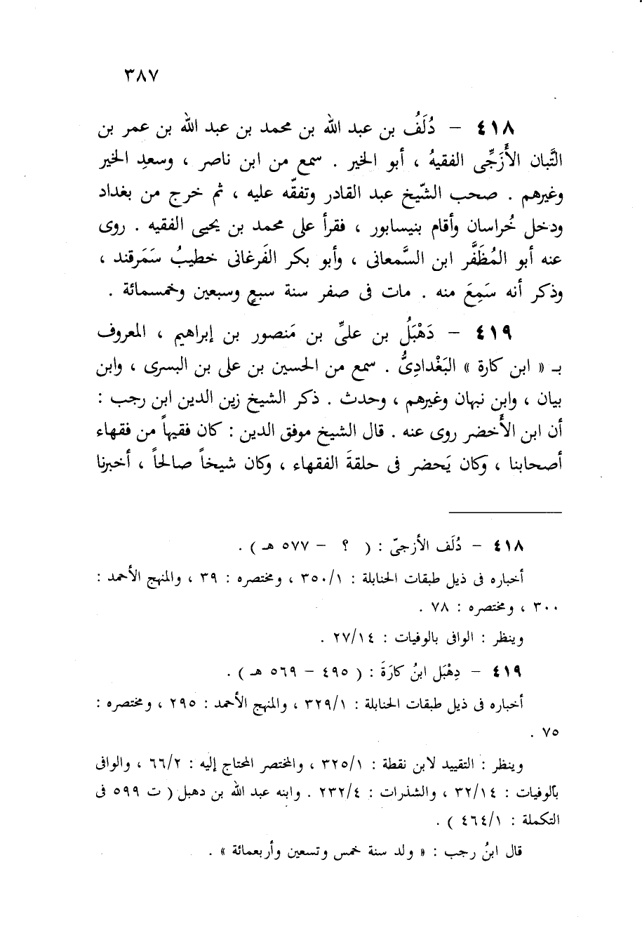 418 - دلف بن عبد الله بن مُحَمَّد بن عبد الله بن عمر بن التبَّان الأزجى الْفَقِيه أَبُو الْخَيْر