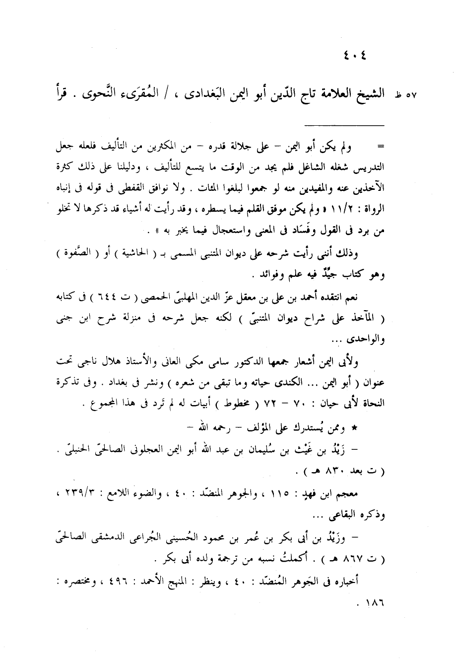 الشَّيْخ الْعَلامَة تَاج الدّين أَبُو الْيمن البغدادى المقرىء النحوى