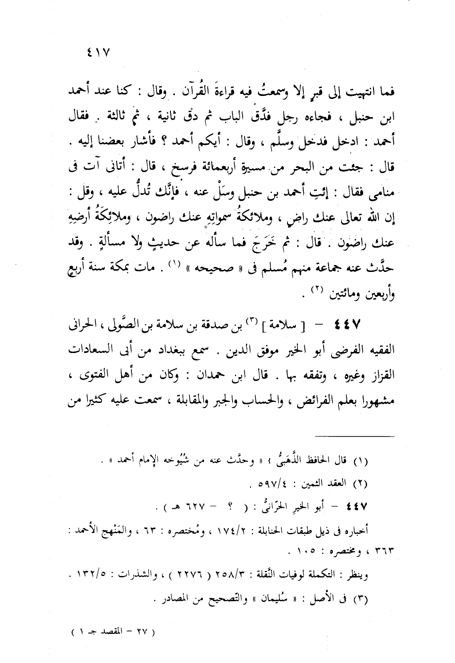 447 - سَلامَة بن صَدَقَة بن سَلامَة بن الصولى الحرانى الْفَقِيه الفرضى أَبُو الْخَيْر موفق الدّين