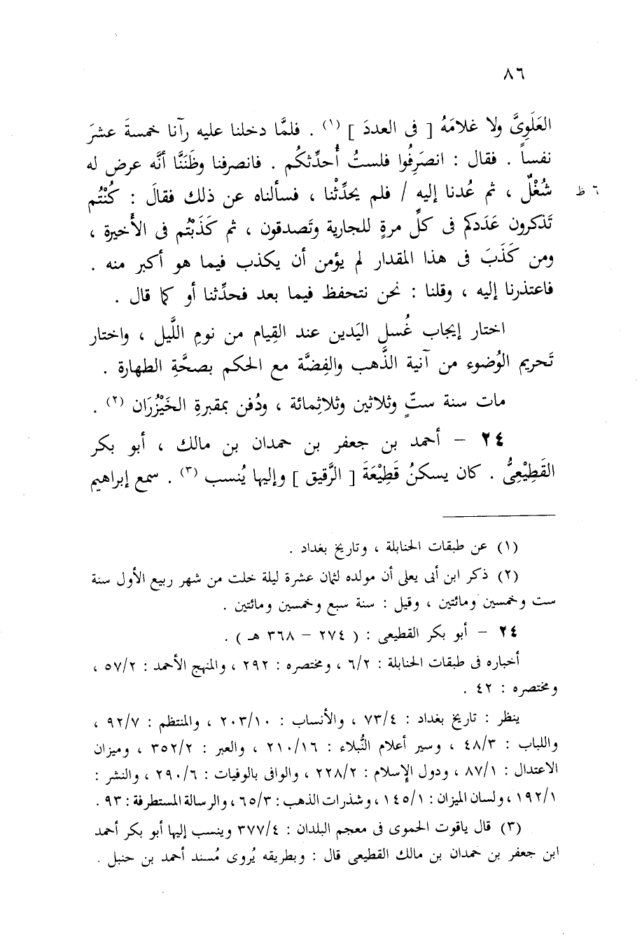 24 - أَحْمد بن جَعْفَر بن حمدَان بن مَالك أَبُو بكر القطيعى