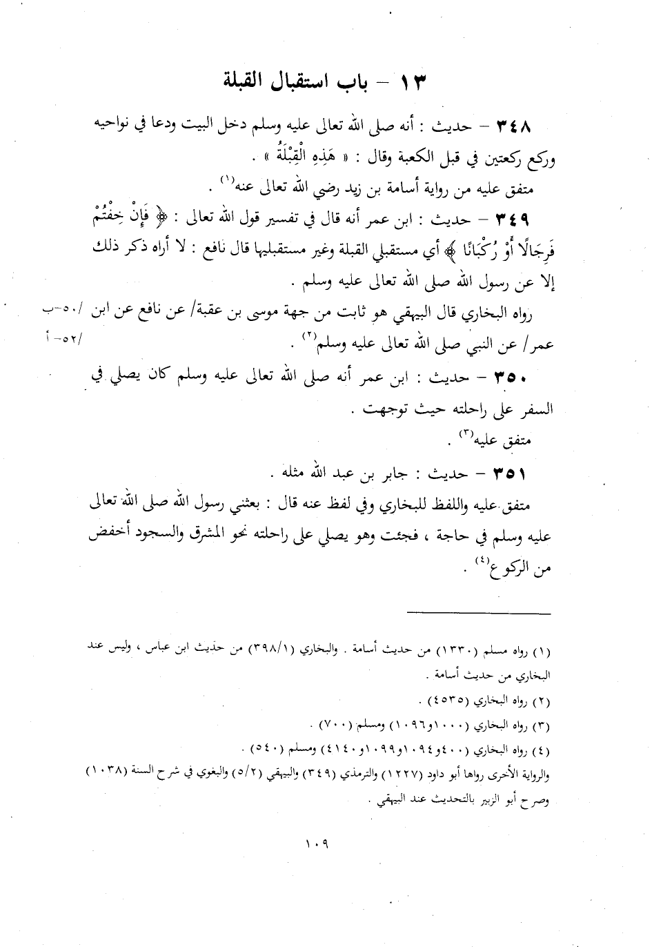 350- حديث: ابن عمر أنه صلى الله تعالى عليه وسلم، كان يصلي في السفر على راحلته حيث توجهت.