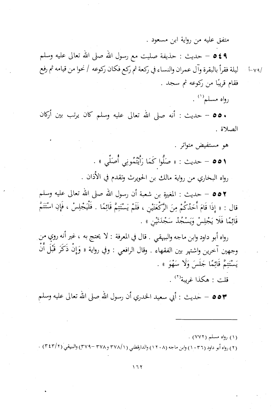 549- حديث: حذيفة صليت مع رسول الله، صلى الله تعالى عليه وسلم، ليلةً فقرأ بالبقرة وآل عمران والنساء في ركعة ثم ركع فكان ركوعه نحوًا من قيامه ثم رفع فقام قريبًا من ركوعه ثم سجد.