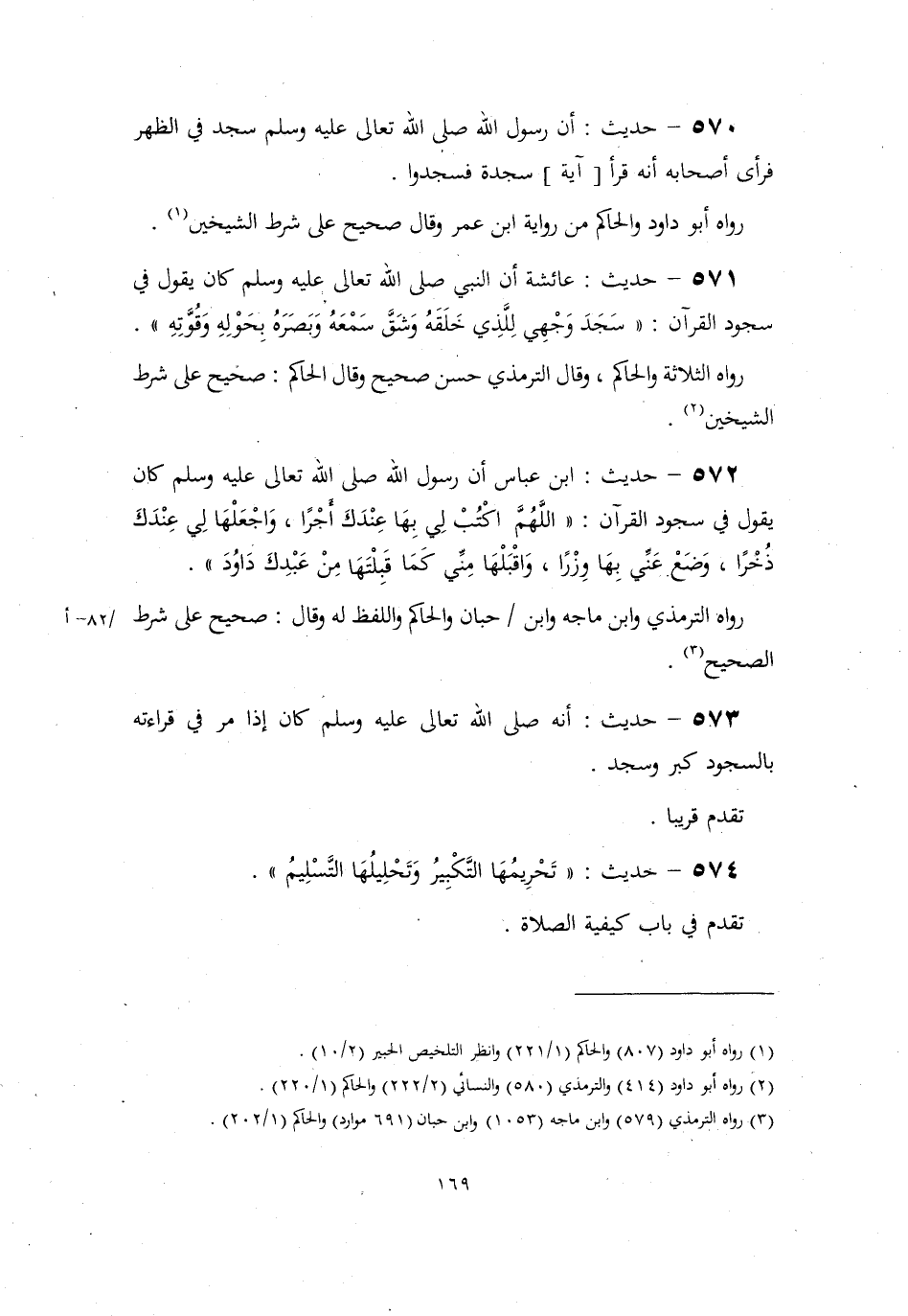 571- حديث: عائشة، أن النبي، صلى الله تعالى عليه وسلم، كان يقول في سجود القرآن: "سجد وجهي للذي خلقه وشق سمعه وبصره بحوله وقوته".
