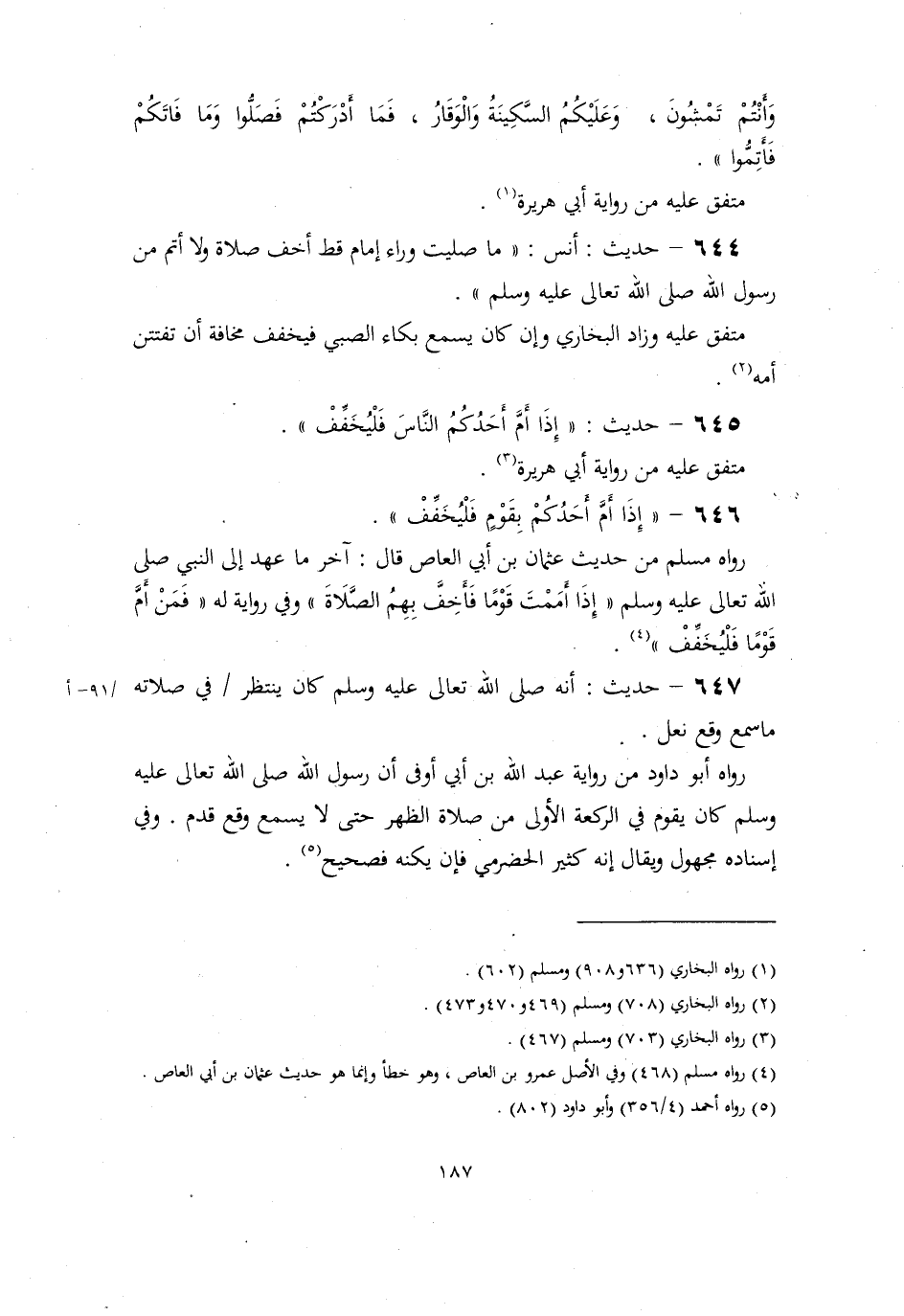 646- "إذا أَمَّ أحدُكم بقومٍ فليخفف ".