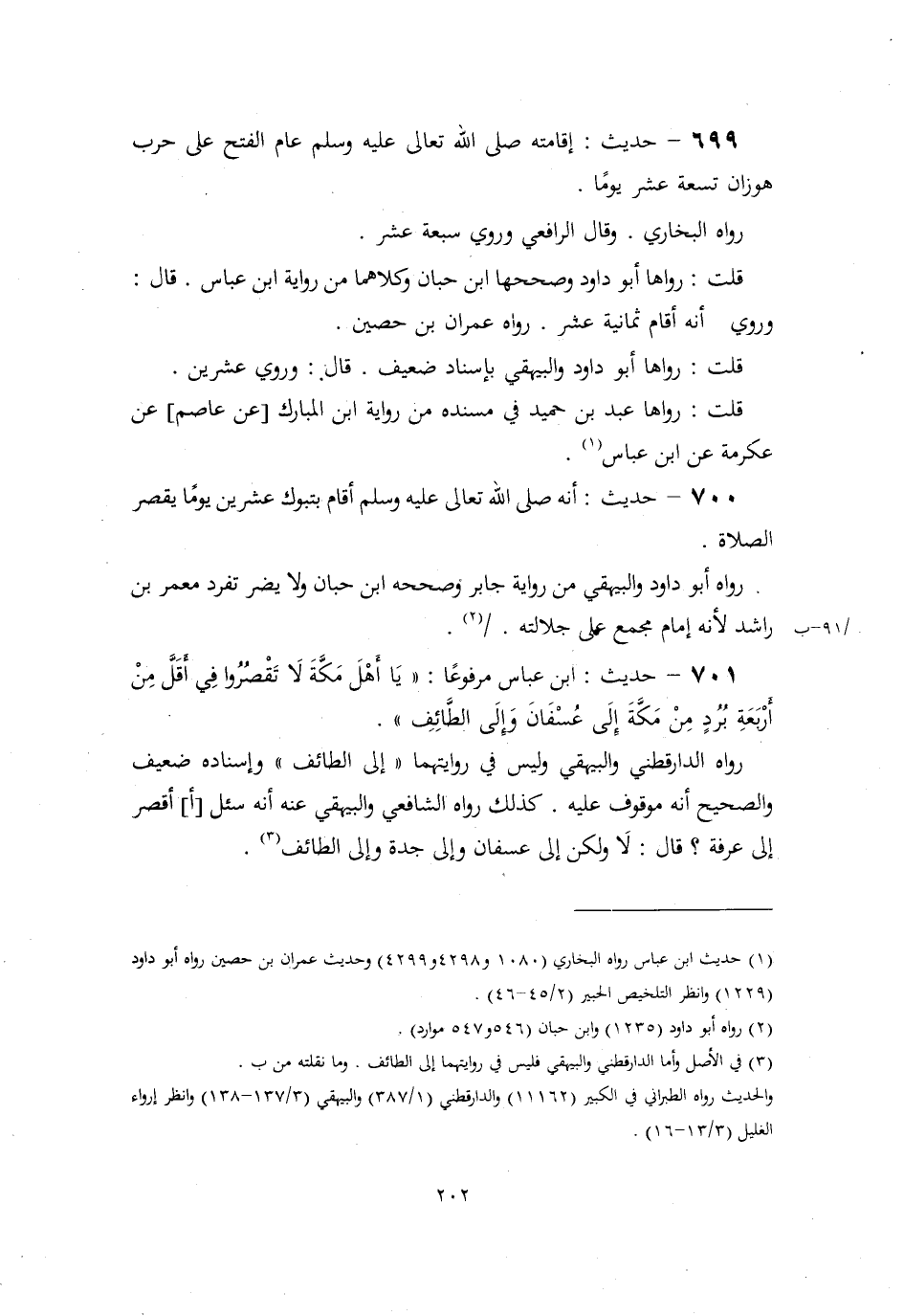 700- حديث: أنه صلى الله تعالى عليه وسلم أقام بتبوك عشرين يومًا يقصر الصلاة.