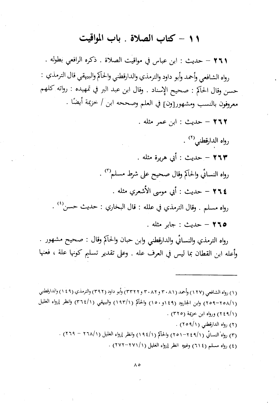 261- حديث: ابن عباس في مواقيت الصلاة. ذكره الرافعي بطوله.
