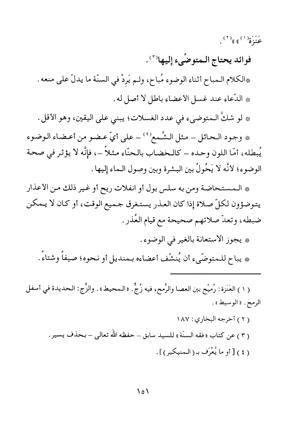 فوائد يحتاج المتوضِّىء إِليها (¬3).