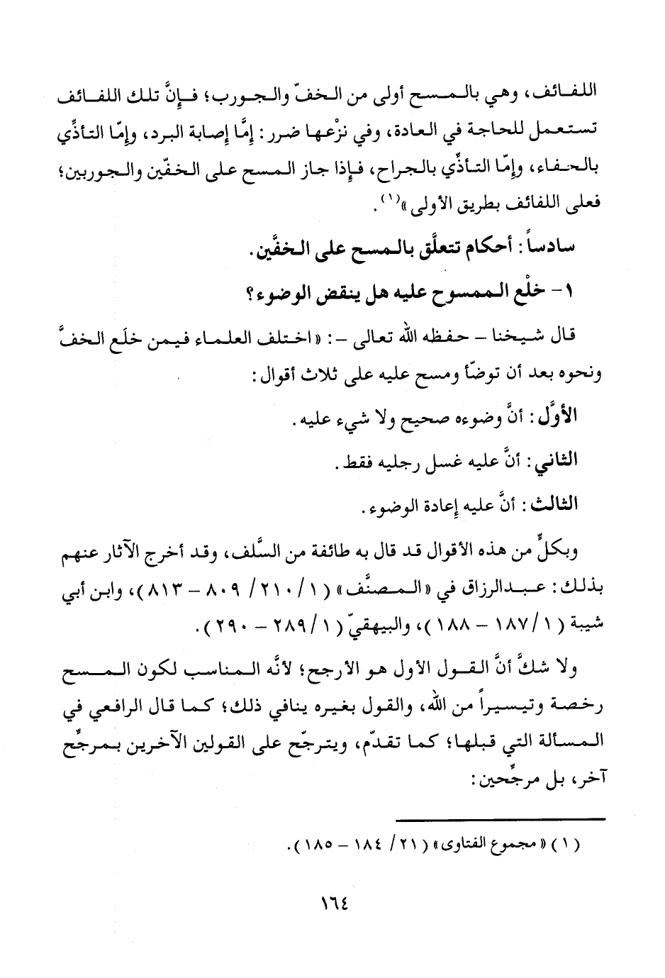 1 - خلْع الممسوح عليه هل ينقض الوضوء؛
