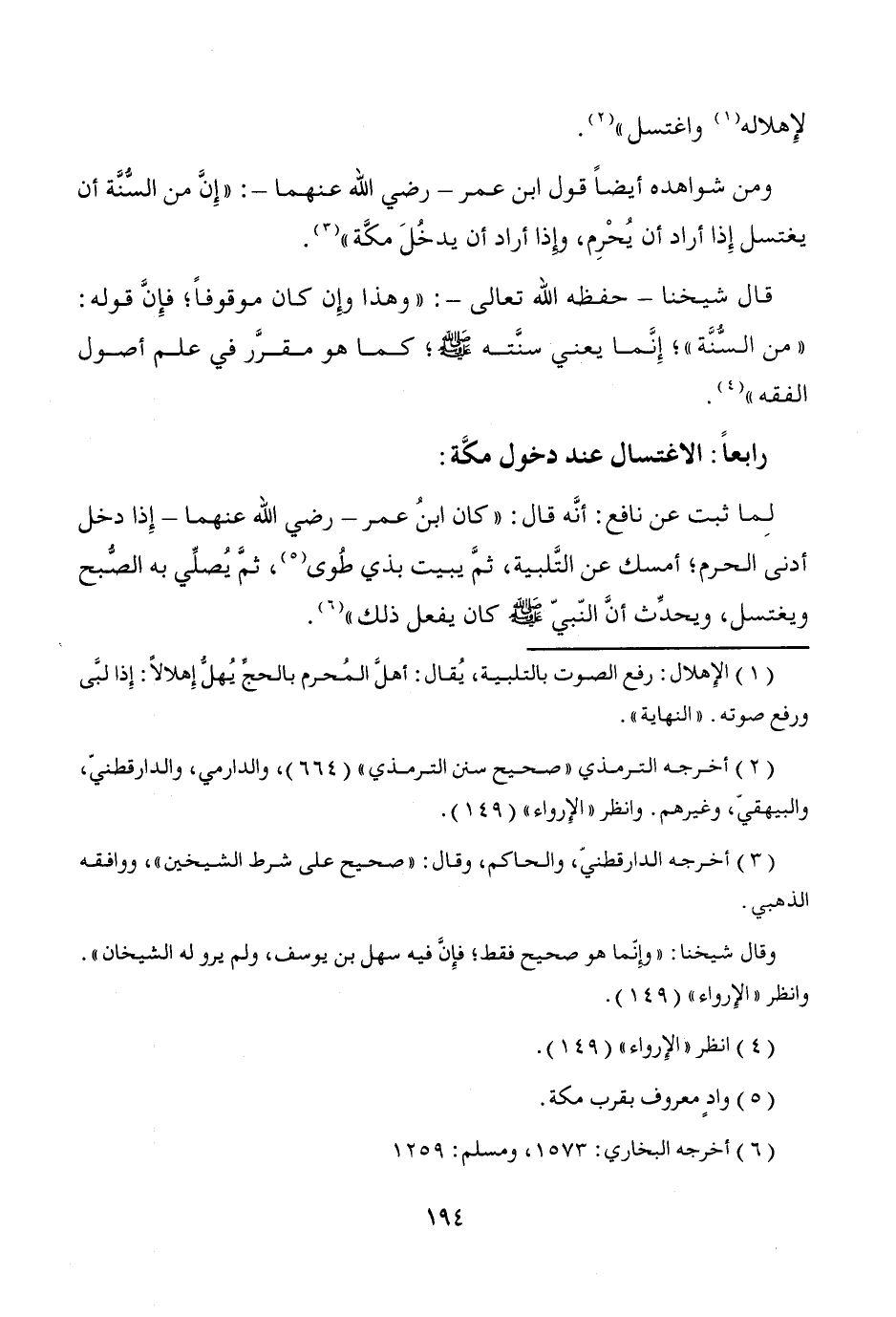 ومن شواهده أيضاً قول ابن عمر -رضي الله عنهما-: "إِنَّ من السُّنَّة أن يغتسل إِذا أراد أن يُحْرِم، وإذا أراد أن يدخُلَ مكَّة" (¬3).