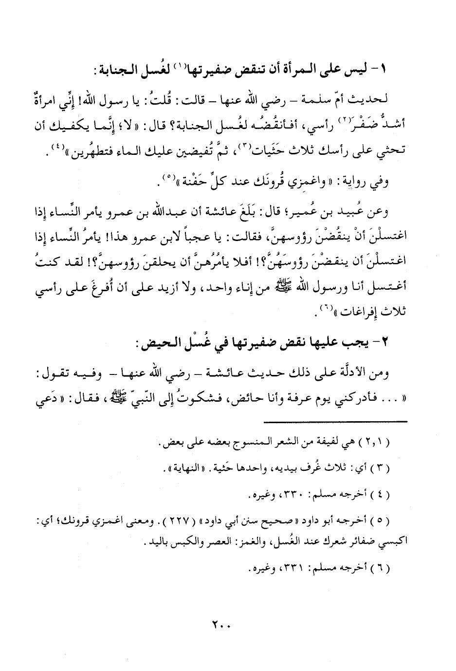 (¬5) أخرجه أبو داود "صحيح سنن أبي داود" (227). ومعنى اغمزي قرونك؛ أي: اكبسي ضفائر شعرك عند الغُسل، والغمز: العصر والكبس باليد.