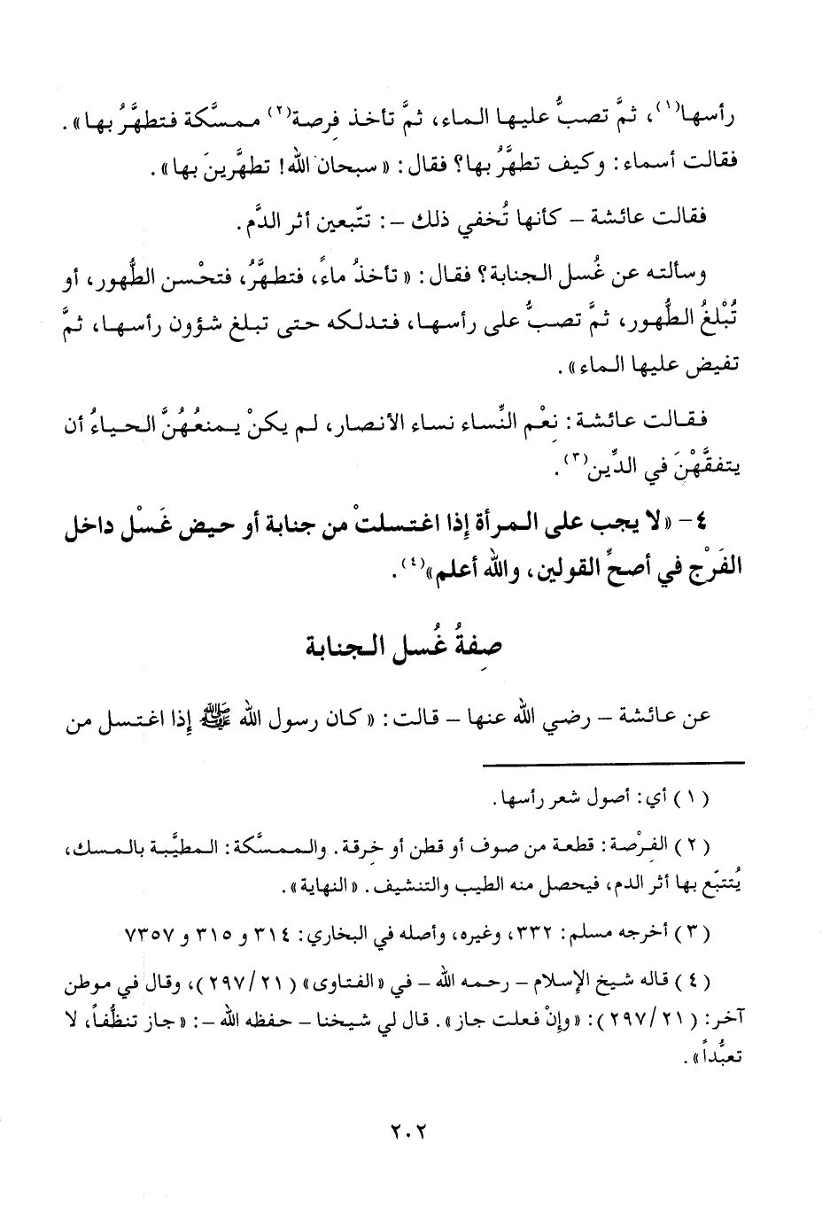 (¬4) قاله شيخ الإِسلام -رحمه الله- في "الفتاوى" (21/ 297)، وقال في موطن آخر (21/ 297): "وِإنْ فعلت جاز". قال لي شيخنا -حفظه الله-: "جاز تنظُّفاً، لا تعبُّداً".