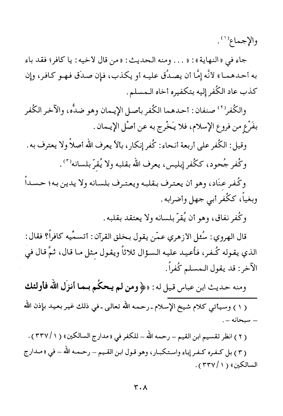 (¬2) انظر تقسيم ابن القيم -رحمه الله- للكفر في "مدارج السالكين" (1/ 337).