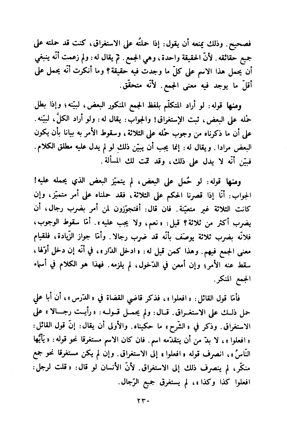 فَصَحِيح وَذَلِكَ يمنعهُ أَن يَقُول إِذا حَملته على الِاسْتِغْرَاق كنت قد حَملته على جَمِيع حقائقه لِأَن الْحَقِيقَة وَاحِدَة وَهِي الْجمع ثمَّ يُقَال لَهُ وَلم زعمت أَنه يَنْبَغِي أَن يحمل هَذَا الِاسْم على كل مَا وجدت فِيهِ حَقِيقَة وَمَا أنْكرت أَنه يحمل على أقل مَا يُوجد فِيهِ معنى الْجمع لِأَنَّهُ مُتَحَقق