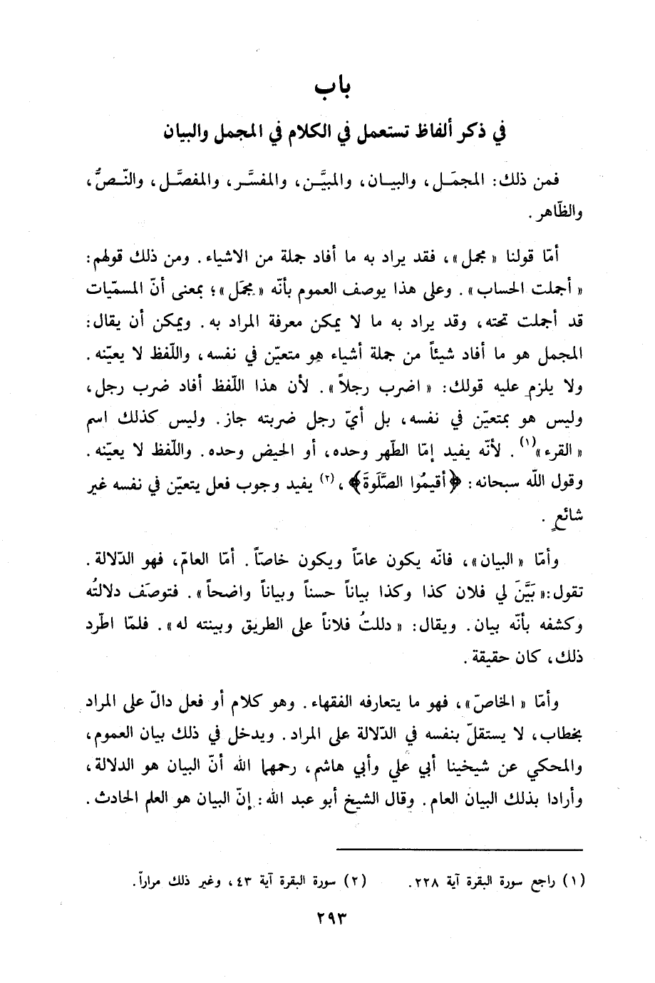 - صَلَّى اللَّهُ عَلَيْهِ وَسَلَّم َ - بَاب فِي ذكر أَلْفَاظ تسْتَعْمل فِي الْكَلَام فِي الْمُجْمل وَالْبَيَان - صَلَّى اللَّهُ عَلَيْهِ وَسَلَّم َ -