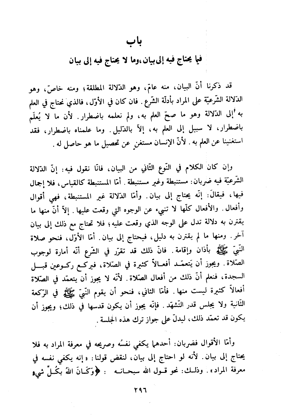 - صَلَّى اللَّهُ عَلَيْهِ وَسَلَّم َ - بَاب فِيمَا يحْتَاج فِيهِ إِلَى بَيَان وَمَا لَا يحْتَاج فِيهِ إِلَى بَيَان - صَلَّى اللَّهُ عَلَيْهِ وَسَلَّم َ -