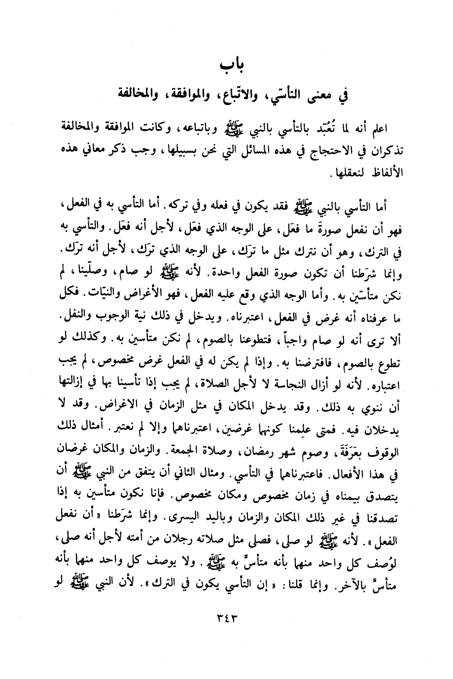 - صَلَّى اللَّهُ عَلَيْهِ وَسَلَّم َ - بَاب فِي معنى التأسي والاتباع والموافقة والمخالفة - صَلَّى اللَّهُ عَلَيْهِ وَسَلَّم َ -