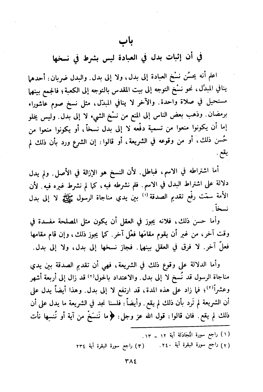 - صَلَّى اللَّهُ عَلَيْهِ وَسَلَّم َ - بَاب فِي أَن إِثْبَات بدل فِي الْعِبَادَة لَيْسَ بِشَرْط فِي نسخهَا - صَلَّى اللَّهُ عَلَيْهِ وَسَلَّم َ -
