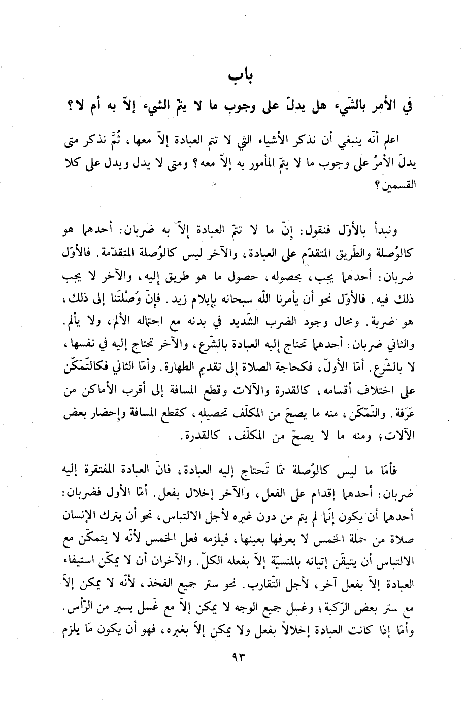 - صَلَّى اللَّهُ عَلَيْهِ وَسَلَّم َ - بَاب فِي الْأَمر بالشَّيْء هَل يدل على وجوب مَا لَا يتم الشَّيْء إِلَّا بِهِ أم لَا - صَلَّى اللَّهُ عَلَيْهِ وَسَلَّم َ -