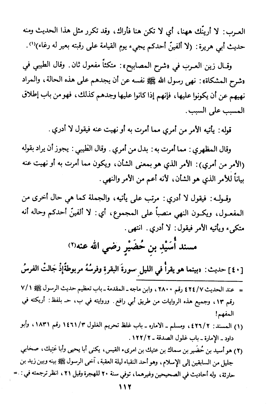 40 - حديث "بينَما هو يقرأ في الليل سورة البَقرةِ وفَرسُه مربوطةٌ إذْ جالت الفرسُ