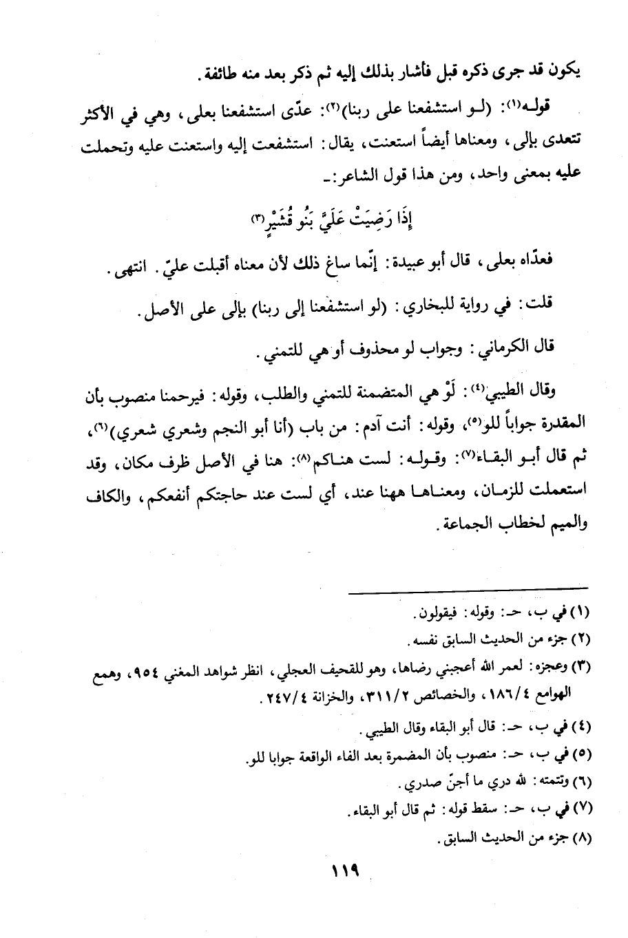 قلت: في رواية للبخاري "لو استشفعنا إِلى ربّنا" بإلى على الأصل.