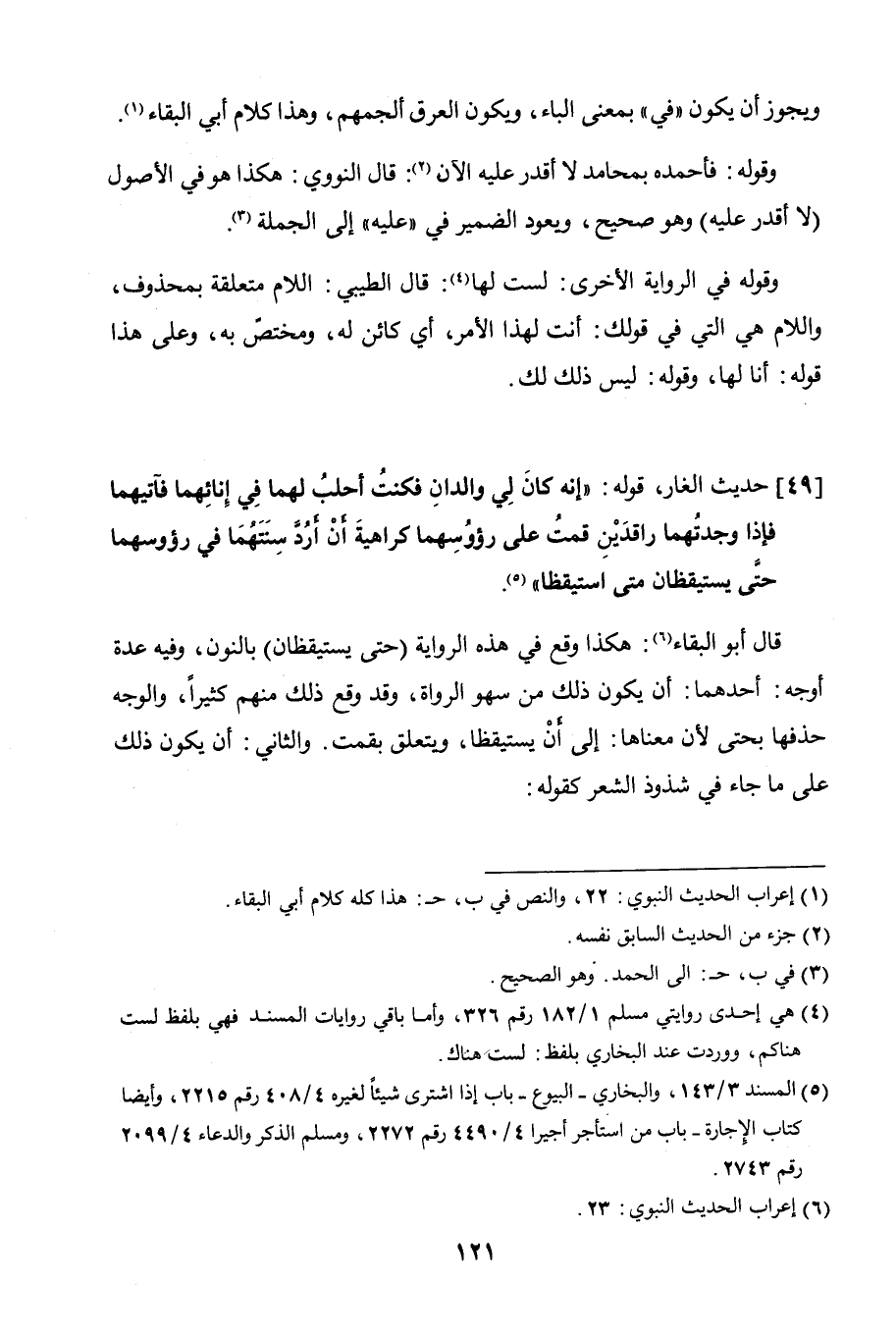 قال أبو البقاء: هكذا وقع في هذه الرواية "حتى يستيقظان" بالنون، وفيه عدة أوجه: أحدها: أن يكون ذلك من سهو الرواة، وقد وقع ذلك منهم كثيراً، والوجه حذفها بحتى، لأن معناها إلى أن يستيقظا، وتتعلق بقمت.