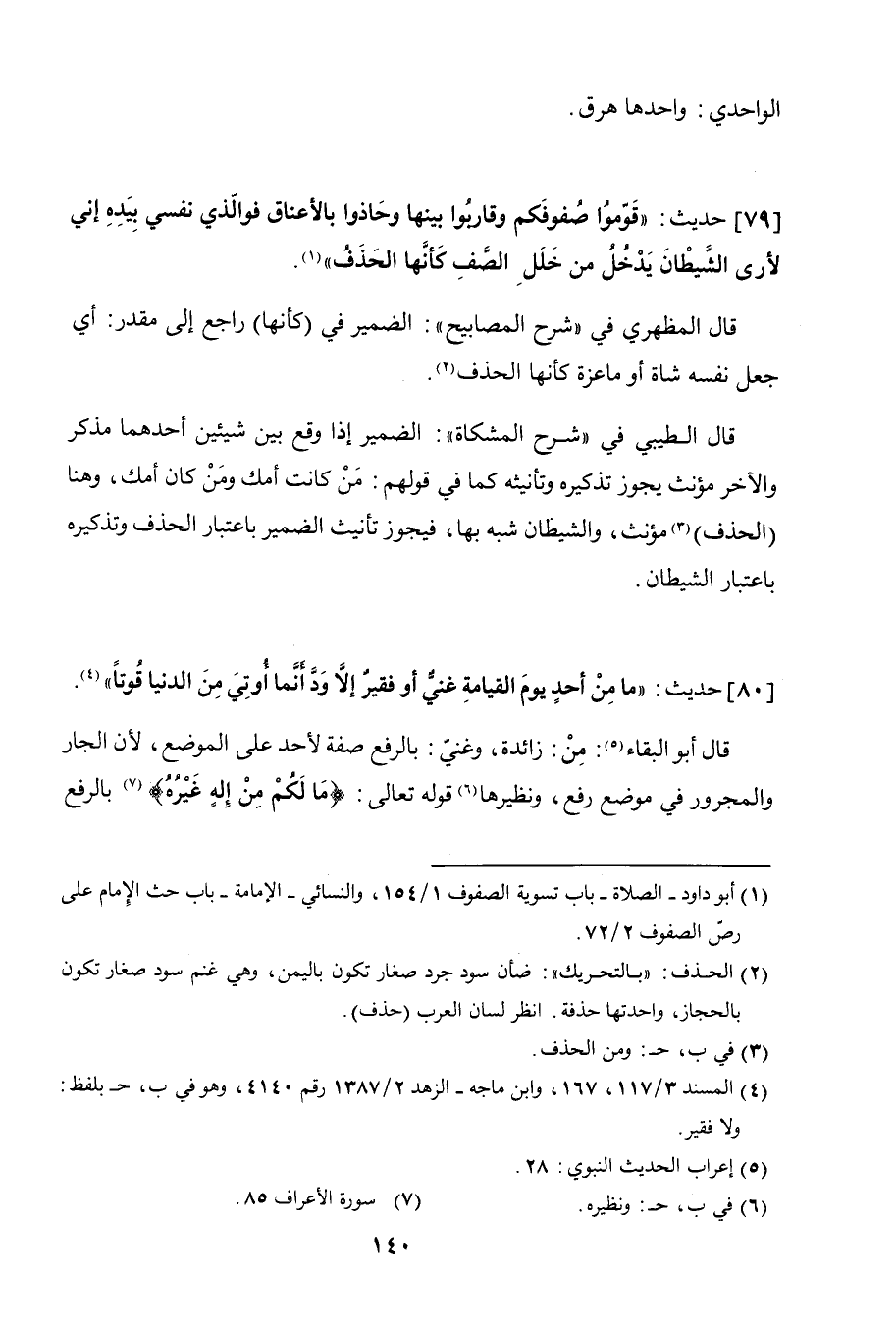 79 - حديث "رُصُّوا صُفُوفَكُم وقارِبوا بَيْنَها وحاذُوا بالأَعْناق، فوالذي نَفْسي بيده إني لأرى الشَّيطانَ يَدْخُلُ مِنْ خَلَلِ الصفّ كأَنَّها الحَذَف".