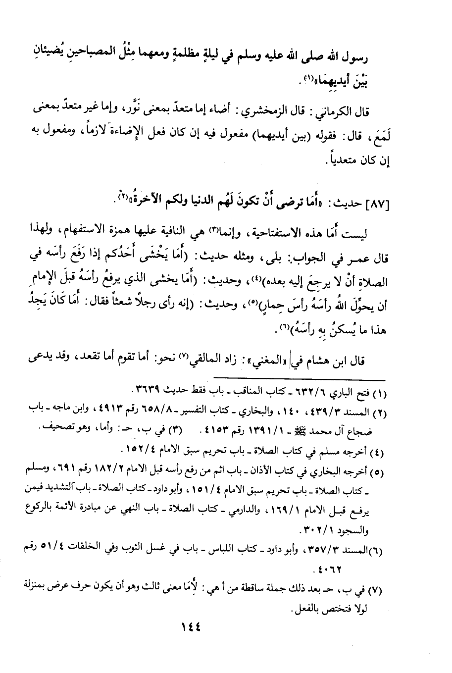 ومثله حديث "أما يخشى أحدُكم إذا رفع رأسه في الصلاة أن لا يرجع إليه بصره". وحديث "أما يخشى الذي يرفع رأسه قبل الإمام أن يحوّل الله رأسه رأس حمار". وحديث "أنه رأى رجلاً شعثاً فقال: أما كان يجد هذا ما يسكِّن به رأسه".