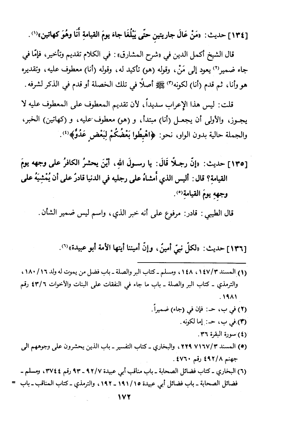135 - حديث "إنّ رَجُلاً قال: يارسول الله كيف يحشرُ الكافر على وَجْهه يَوْمَ القيامة؟ قال: أليس الذي أمشاه على رجليه في الدنيا قادرٌ على أن يُمشيه على وجهه يوم القيامة".