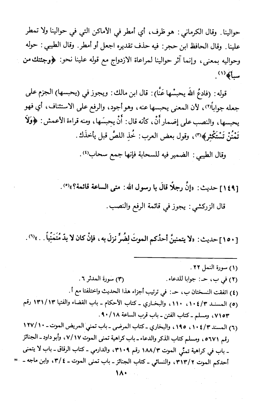 150 - حديث "لا يتمنَّينَّ أَحَدُكُم الموتَ لِضُرٍّ نَزَلَ به، فإنْ كان لابُدَّ مُتمنّياً .. ".
