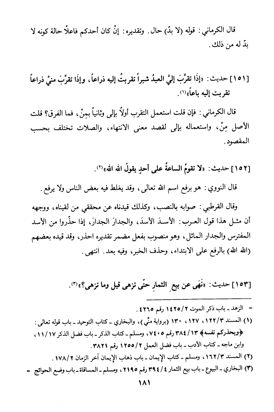 151 - حديث "إذا تقرَّبَ إليَّ العَبْدُ شِبراً تَقرَّبتُ إليه ذِراعاً، وإذا تَقَرّب إليَّ ذِراعاً تَقَرّبت منه باعاً".